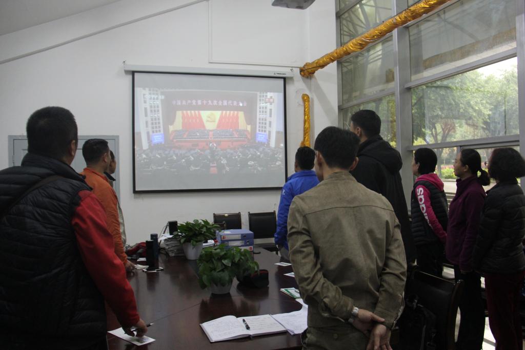 10月18日早上8:50,体育部教职员工已全部到达会议室,热切期盼党的十九大胜利召开。随着十九大直播的开始,每个体育部教职员工脸上都洋溢着自豪的神情,不管是党员干部,还是普通群众,都为党取得的成绩感到骄傲,将党的正确领导给全国人民带来的幸福生活铭刻在心。随着十九大报告的宣告,每名教职员工都纷纷表示坚决拥护党的领导,响应党的号召,坚忍不拔、锲而不舍,奋力谱写社会主义现代化新征程的壮丽篇章。
