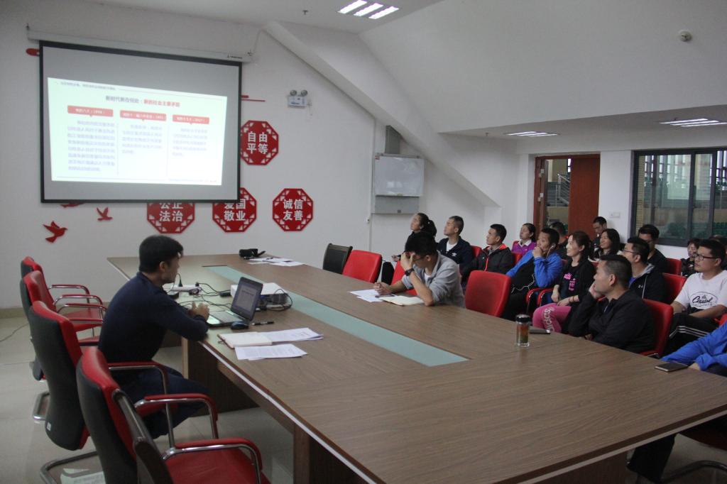 5月30日早上9:00,体育部党总支书记、部长朱海涛在体育馆206党员活动室为体育部全体教职工上了一堂习近平新时代中国特色社会主义思想专题党课。
