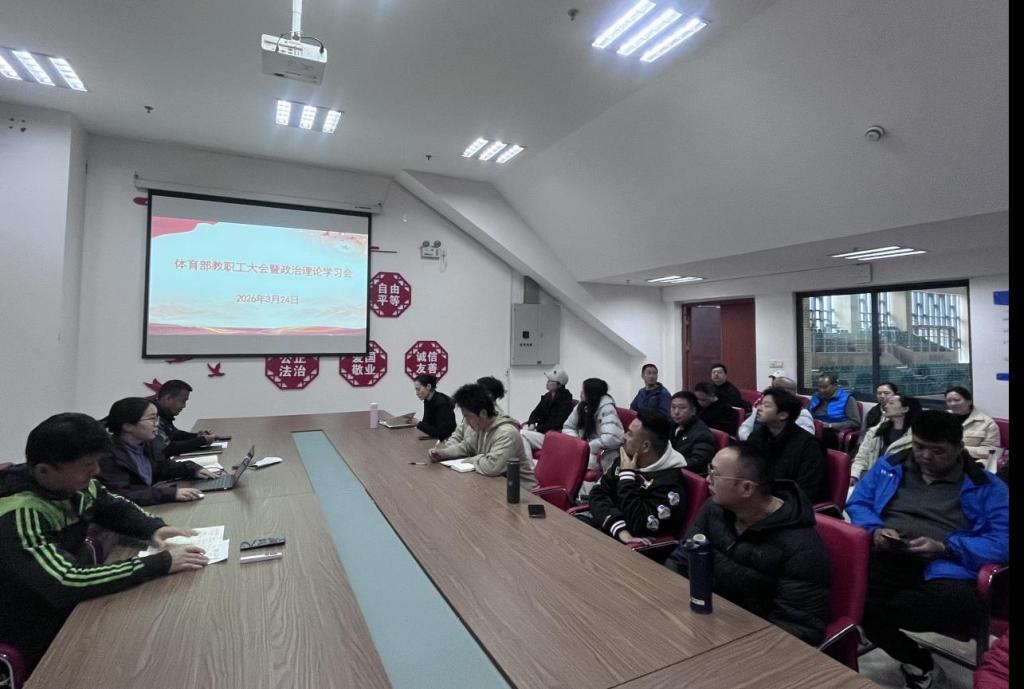 3月24日上午,体育部党总支在体育馆T206会议室组织召开政治理论学习会。会议由党总支书记朱海涛主持,体育部全体教职工参加了会议。
