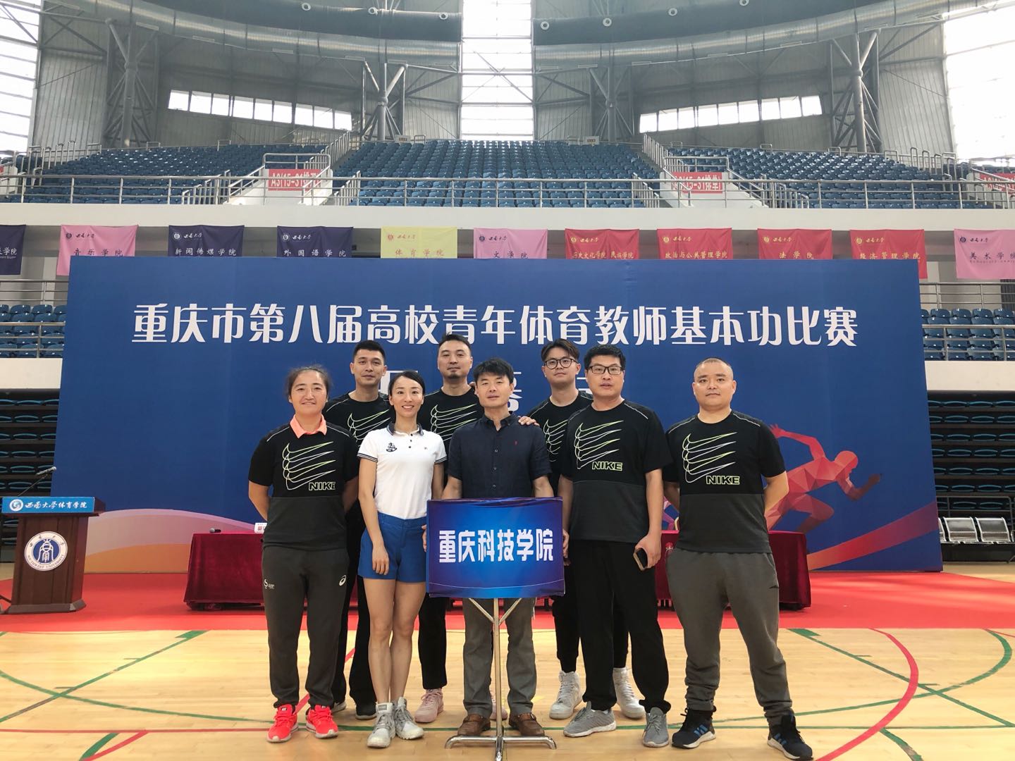 为贯彻落实教育部《普通高等学校体育教育本科专业各类主干课程教学指导纲要》精神,检验我市高校体育教育专业教育教学水平和高校体育教师专业素养,重庆市第八届高校体育教师基本功大赛于9月21、22日在西南大学举办,大赛吸引了市内56所高校参赛。我校代表队喜获团体第七名和优秀组织奖。
