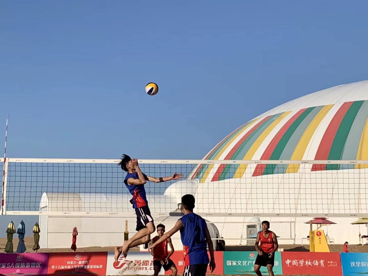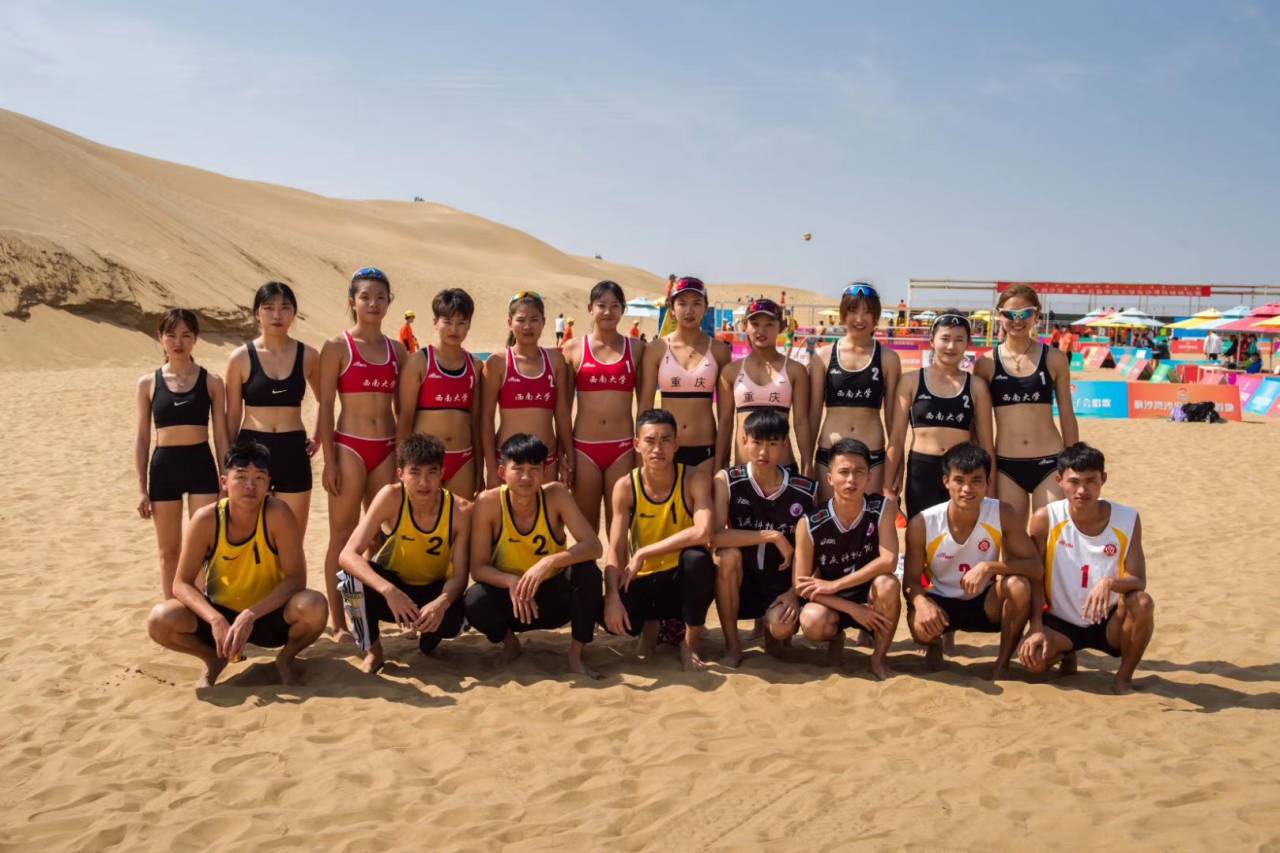 8月27日,第十五届中国大学生沙滩排球锦标赛在内蒙古鄂尔多斯响沙湾落下帷幕。由于沙滩排球正式成为2020年中华人民共和国学生运动会项目之一,各省市尤为重视本次比赛。本次比赛共有来自清华大学、东南大学、北京体育大学、中央民族大学等全国17个省、自治区、直辖市的近80所院校的97支代表队,300多名运动员参赛。经过9天的角逐,我校队员张宝善、李伟涛在男子沙排阳光组获得总排名第十(本科组第七)的优异成绩。 赛前,队员们和教练对排球满怀热爱,大家克服困难、顶着压力,在炎热的暑假,牺牲休息时间,加紧训练,积极备战。在比赛中我校队员不畏强敌,奋力拼搏,力克北京工商大学、云南大学、南京林业大学、山西农业大学、浙江树人大学等多所院校,向来至全国各地高校的运动队展示了科院风采,为学校争得了荣誉。而这也正体现了我校排球队“球未落地,绝不放弃”的精神。通过本次比赛我们收获了经验也发现了不足。在以后的训练中一定加强训练,克服心理问题,建立信心,打好关键球。在以后的比赛中为校争光。