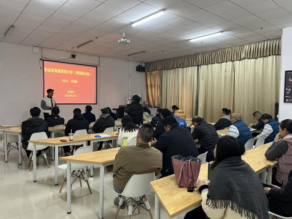 为促进部门教师对大型体育赛事的深入了解,提升青年教师教学与科研水平,体育部于近日组织召开以“全运会执裁实践与群众体育赛事发展”为主题的内部青年学术论坛。袁康耀老师结合执裁经历,从赛事组织、规则执行、临场判断、运动员表现等方面进行了系统分享,并就群众性体育赛事的特点与趋势进行了分析。