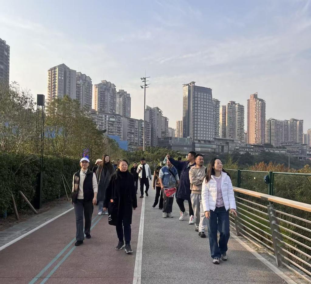 活动当天,阳光普照,秋意浓浓。结束廉洁文化馆的“清风洗礼”后,分工会来到九龙艺术半岛,组织教职工开展5公里健步走。大家沿着薰衣草步道徐徐前行,一面是江面粼粼波光,一面是路边绿意葱葱,桂香与草香交织,脚步与笑声合拍。慢下来的时光里,老师们回忆老校区的发展故事,畅想新校区体育教学的新局面,交流如何兼顾教学、赛事与生活。大家挥汗合影,把江畔秋景、同事情谊与事业憧憬一起定格。一场徒步,不仅让身心“充电”,更让“体育人”的凝聚力与幸福感在江风里悄悄拔节生长。