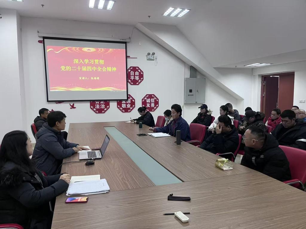 为深入学习贯彻党的二十届四中全会精神,切实引导全体教职工将思想和行动统一到党中央决策部署上来,12月17日上午,体育部党总支在T206会议室举行党的二十届四中全会精神宣讲会。党总支书记朱海涛作专题宣讲报告,全体教职工参加了会议。